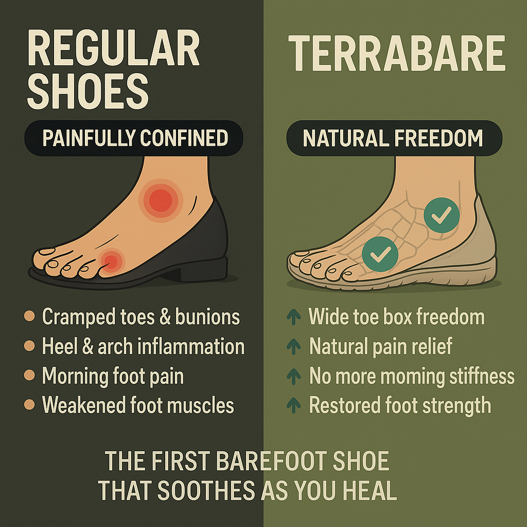 "Sarah, 42, Nurse: 'Walking through nature used to be painful on my feet. Now with Terrabares, I feel every step connecting me to the earth - no more heel pain, just pure freedom.'" ⭐⭐⭐⭐⭐