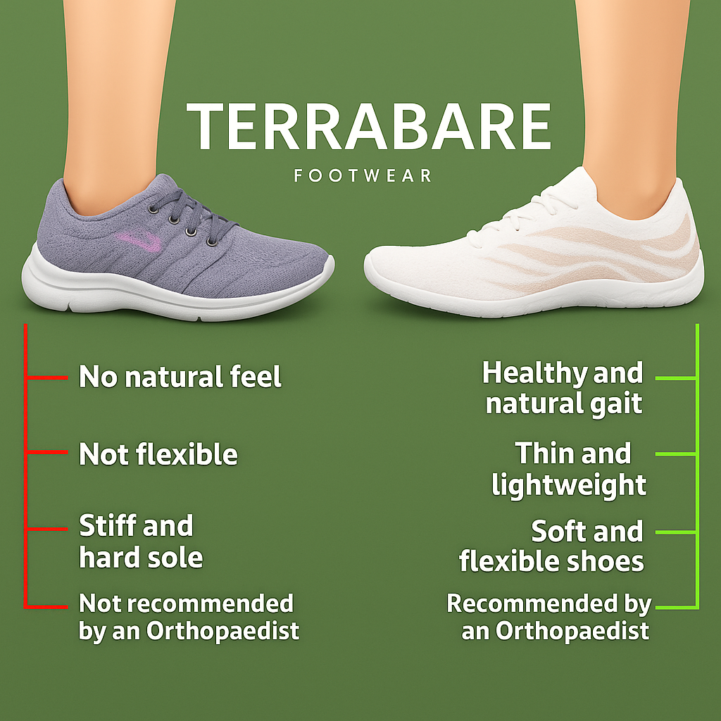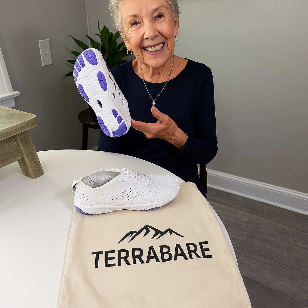 Terrabare Barefoot Shoes use natural foot biomechanics and zero-drop design to gradually restore your foot's natural strength, reduce inflammation, and eliminate the root cause of your pain.