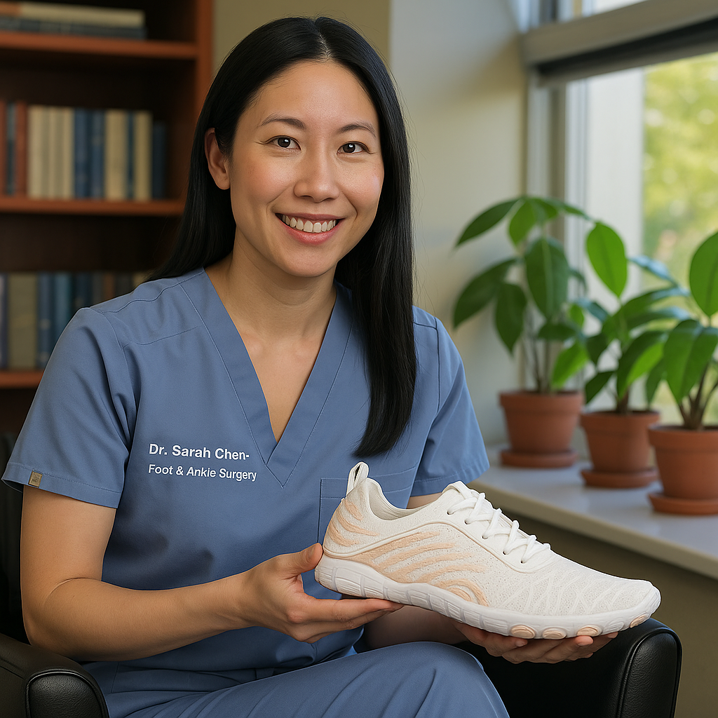 Our TerraBare copper-infused shoes are recommended by Dr. Sarah Chen, a board-certified podiatrist at the